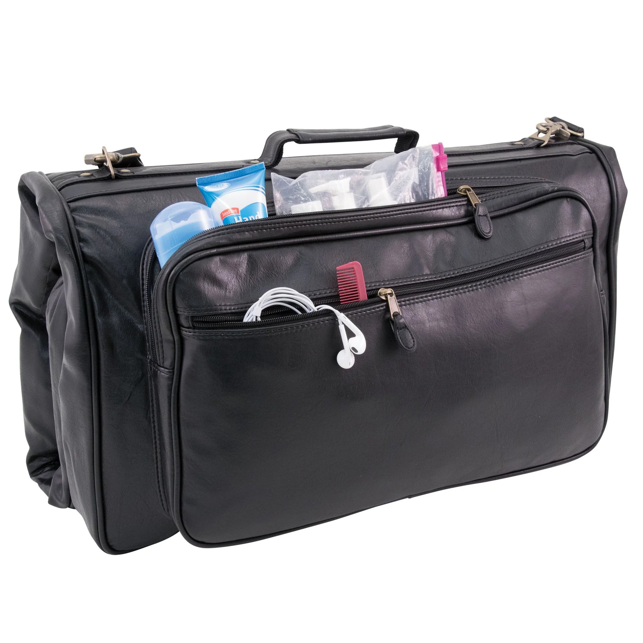 For added convenience, the bag includes an adjustable, detachable shoulder strap and a parachute clasp closure to keep your belongings secure. The main compartment also has a hanger loop, so you can hang your clothes directly inside. This versatile garment bag is perfect for keeping your clothes safe and wrinkle-free during your travels.