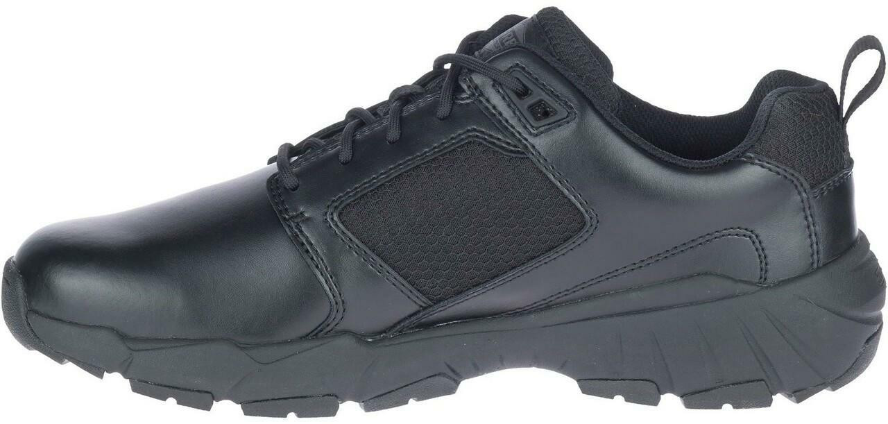 The Merrell FullBench Tactical Black Boot is a waterproof coated leather and mesh tactical shoe featuring COMFORTBASE footbed and midsole technologies for all day comfort and an oil and slip resistant sticky rubber outsole for traction. Light and tough.