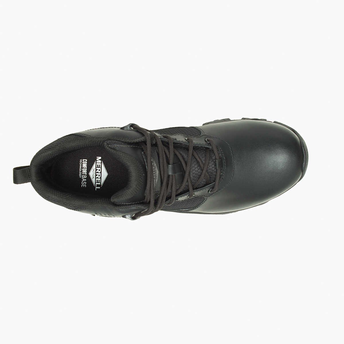 The same out-of-the box comfort you love from our original Moab hiking boot, re-invented for long days on duty. Durability and protection with waterproof leather and mesh upper, and recycled lining, laces, and our COMFORTBASE™ footbed and midsole offer all day comfort on the job. The Merrell Men's Moab 3 Mid Tactical Response Waterproof Black Boot is built for the toughest environments.