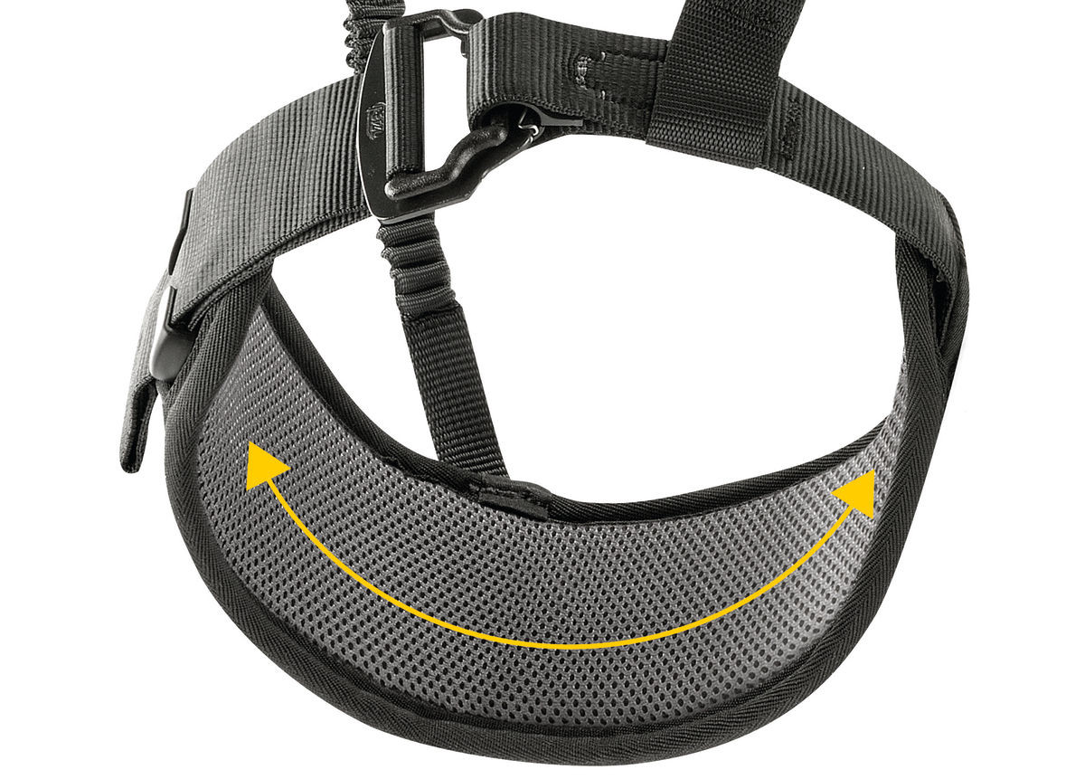 - Metal ventral attachment point distributes the load between the waistbelt and leg loops during suspension