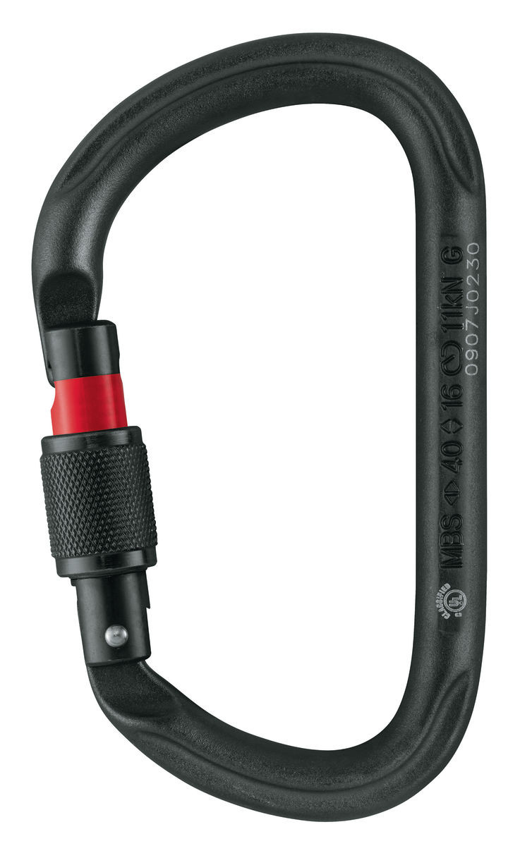 - SCREW-LOCK: manual screw-lock with red band provides a visual warning when the carabiner is unlocked