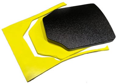 Designed to be worn in carrier between armor and body. Absorbs up to 90% of impact force by forming a comfortable protective shell repeatedly, impact after impact (as measured by ASTM F1614).