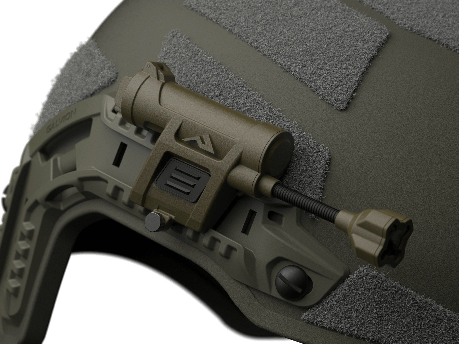 Dual-Fuel Multi-Color Helmet Light. Powered by a single CR123 lithium or one AA battery, the Princeton Tec Charge X is the ultimate all-in-one helmet lighting solution. This light features a 100 lumen dimmable white light, along with red, green, blue, and IR LEDs. Charge X’s simple programmability allows for setting and changing the order in which the colored LEDs appear upon activation for highly personalized performance. This helmet mounted light features an upgraded version of Princeton Tec’s signature flexible boom that allows for easy and accurate spot illumination that adapts to the task at hand. Lastly, Charge X’s small footprint occupies minimal “rail estate,” leaving plenty of room for other vital rail attachments.