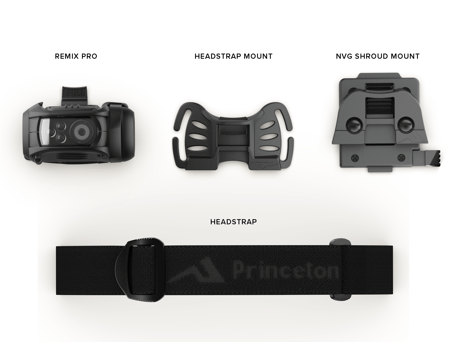 Tactical Headlamp.Powered via a single CR123 battery, the Princeton Tec Remix Pro is designed for optimal cold weather performance. This headlamp is the full package with its area illuminating flood light, long distance spot beam, and an array of three red LEDs for preserving night vision. Equipped with an asymmetrical arm bracket, this headlamp is easily adjusted to direct light where needed. This headlamp is available in a wide variety of LED configurations, and with the included MPLS Mounting System, it can be mounted from head, helmet, or MOLLE for mission-critical adaptability.