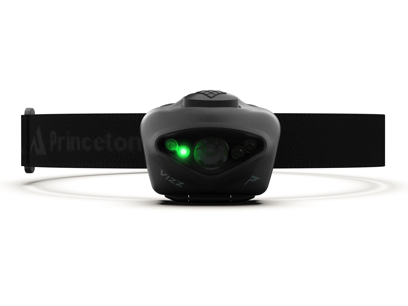 Specialty Color Waterproof Headlamp. This light combines the reliability of a heavy-duty waterproof headlamp with the versatility of a specialty colored light. The Princeton Tec Vizz 550 RGB featuresfive modes: high and low white spot beams, as well as red, green, and blue light options, making Vizz RGB fit for endless tasks that require specialized personal lighting. Designed to withstand the harshest conditions and Rated IPX7, Vizz 550 is submersible up to one meter. This headlamp’s digital lockout prevents accidental activation, barring the risk of battery drain.