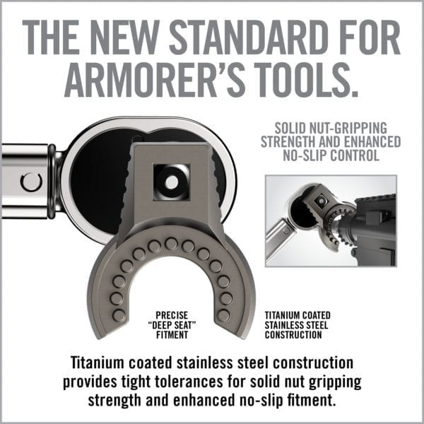 Master-Fit single purpose crowfoot wrenches are made specifically for the job. Specialized for precise fitment and manipulation of A2 barrel nuts, buttstocks, muzzle devices and castle nuts. Titanium coated stainless steel construction provide tight tolerances for solid nut-gripping strength and enhanced no-slip fitment. Paired with the heavy-duty Master-Fit Torque Wrench it takes Gun DIY building to a new level of Master Grade quality and precision.