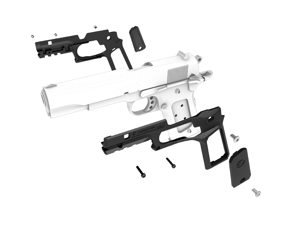 The ReCover 1911 Grip and Rail Systems have proven to be the most stable rail solutions on the market as well as the most popular, and are easily installed on your gun and under 3 minutes. The high-grade, lightweight, glass reinforced polymer ReCover 1911 grips can be installed without the need for a gunsmith, and requires no permanent modifications to be made to your firearm.