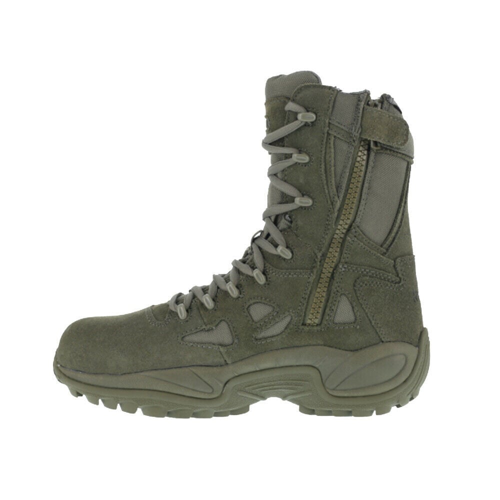 The Sage Green boot has the same construction as the RB8894 boot including full grain leather and 1200 denier nylon uppers with high abrasion and slip-resistant non-marking dual density outsoles. The parts you cant see on these sage green desert boots are equally important: non-metallic shanks, dual-density ball and heel cushion, and Shock Eliminator technology that lets the tactical boot take the pounding, not your feet.