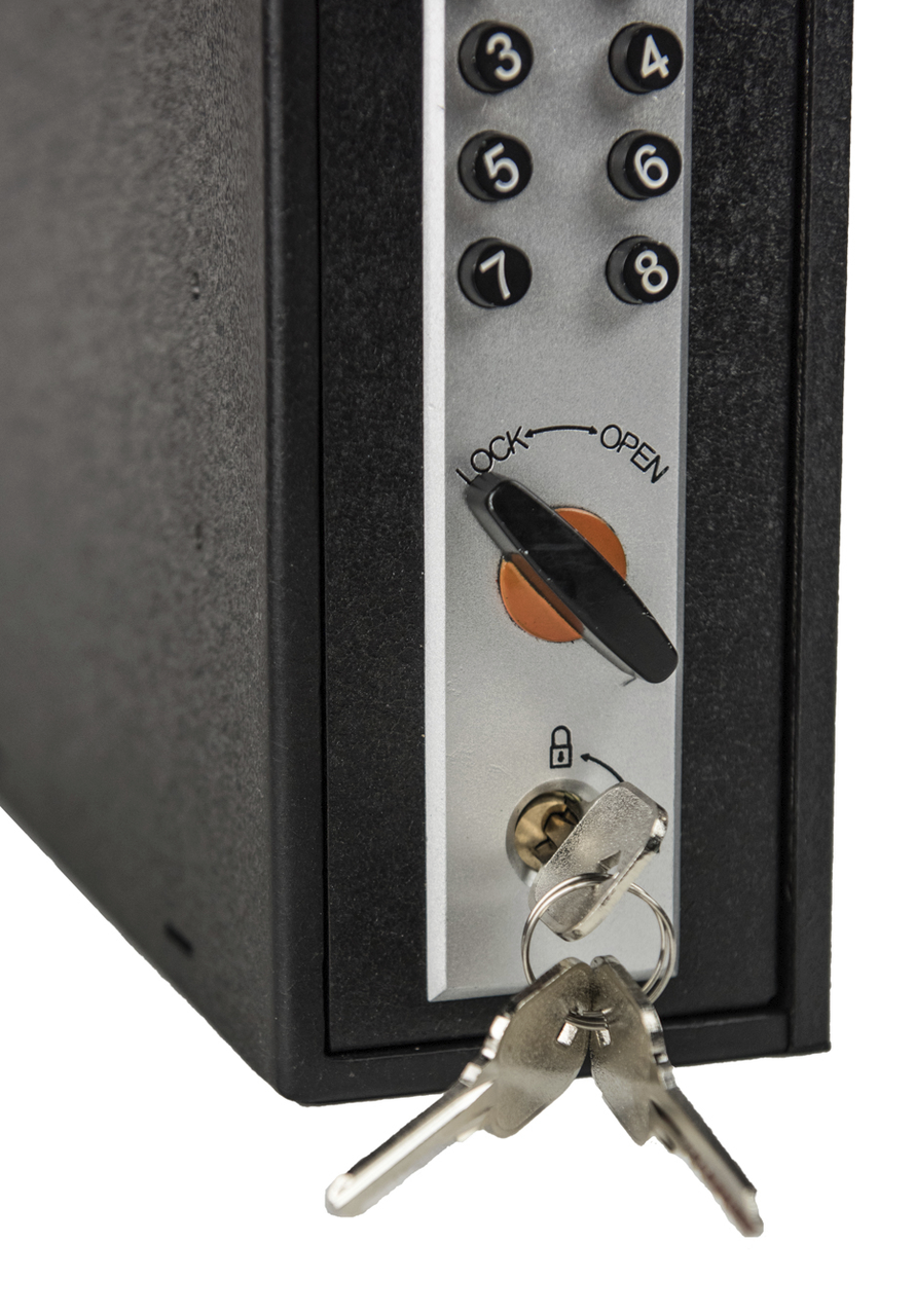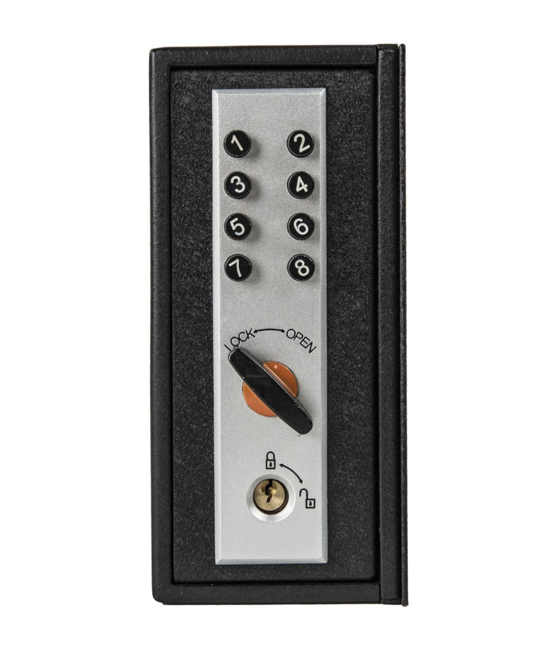 8 button mechanical lock with over 1,500+ combinations, no batteries required