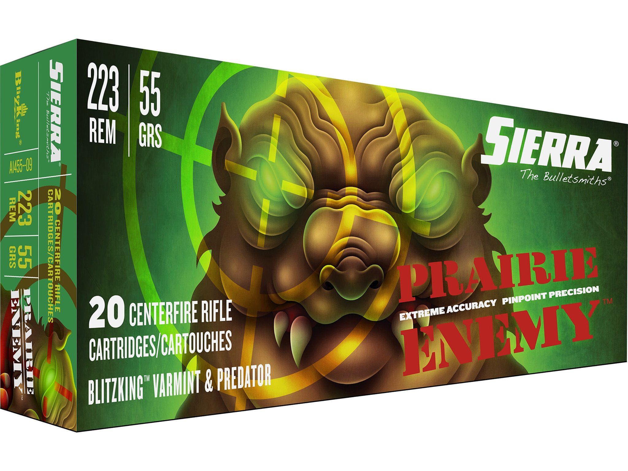 Prairie Enemy Varmint & Predator Ammunition from Sierra was developed specifically to deliver legendary BlitzKing accuracy and devastating terminal performance in an economical package for high volume hunting and shooting situations. Prairie Enemy is loaded with the same dedication to dependability and performance that Sierra is famous for—enemy number one for varmints & predators! This ammunition is new production, non-corrosive, in boxer primed, reloadable nickel plated brass cases.
