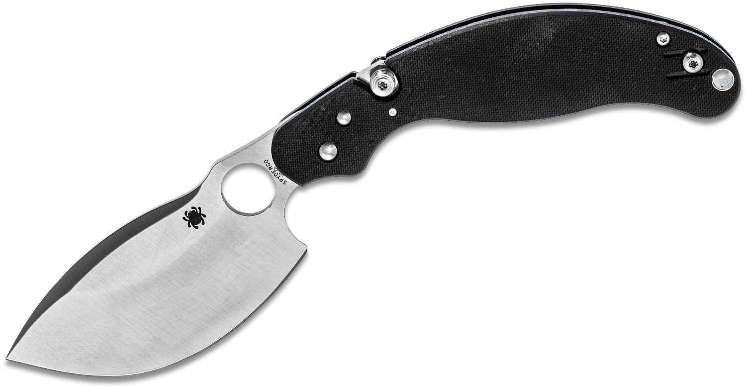 The Parata’s blade is linked to a sleek, linerless G-10 handle with Spyderco’s patented Stop Lock™ -- a high-strength, extremely user friendly lock mechanism that releases by lifting a toggle on the spine of the handle. Introduced for the first time in this knife, the Stop Lock is amazingly compact and offers smooth, ambidextrous operation. Its mechanism is housed between textured G-10 scales that are gracefully curved for a secure grip and joined by stainless steel standoffs to create a lightweight, easy-to-clean, open-backed construction style.