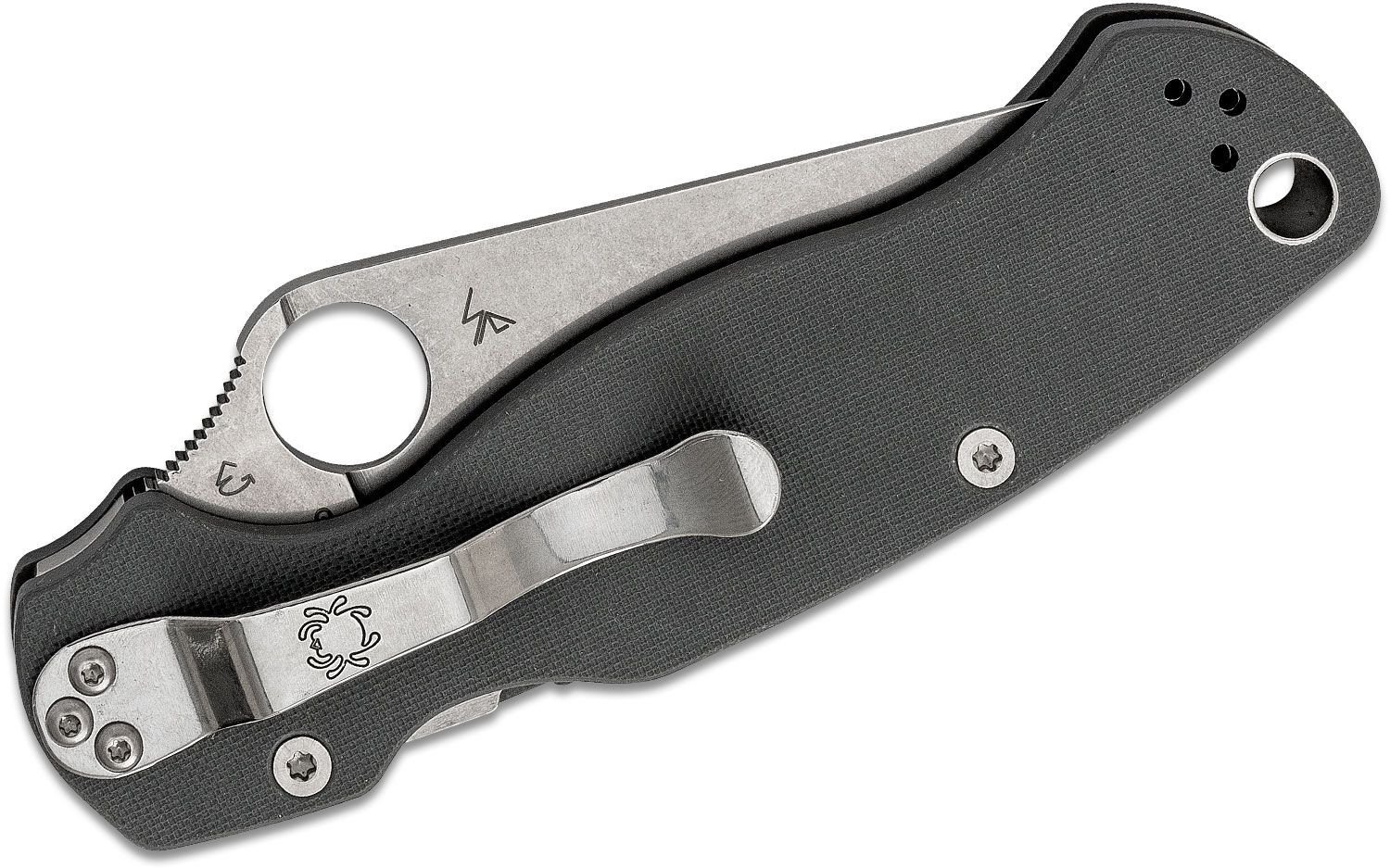 Carpenter Technology Corporation developed Micro-Melt Maxamet specifically for use in the rollers of their state-of-the-art steel rolling mills. As one of only a handful of companies to master the specialized methods necessary to machine, heat treat, and grind this exotic alloy, Spyderco is pleased to offer it in some of their American-made products. This Para Military 2 features all the characteristics of the best-selling standard model, plus the supercharged edge holding and toughness of a Maxamet blade. To further distinguish it, its textured G10 scales are a distinctive dark gray color.