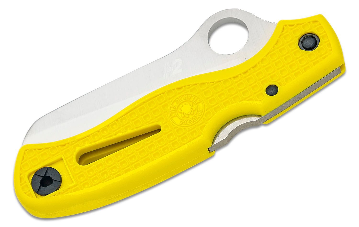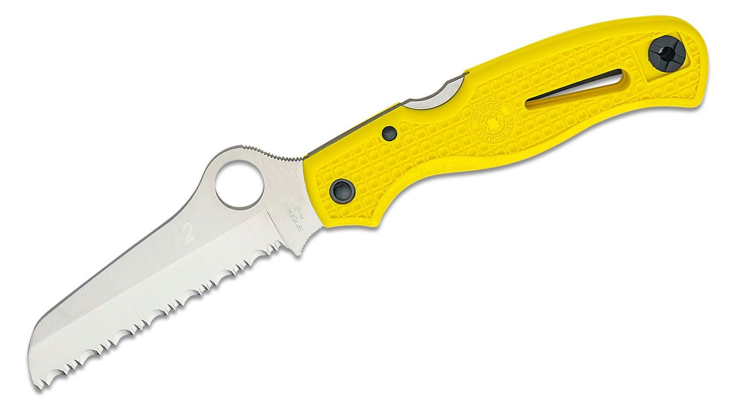 The Spyderco C89SYL Atlantic Salt Folding Knife is the ultimate tool for seafarers and emergency responders. This resilient knife features a 3.69-inch fully serrated H1 steel blade, ensuring exceptional cutting performance that remains impervious to rust in both fresh and saltwater environments. Its ergonomic yellow fiberglass reinforced nylon handle with Volcano Grip ensures a secure hold, while the lightweight design at just 2.75 ounces makes it easy to carry. The knife includes a reversible titanium pocket clip for versatile carrying options and a thumb hole for effortless opening. Built for reliability, the Atlantic Salt is a must-have for anyone tackling challenging cuts in critical situations.
