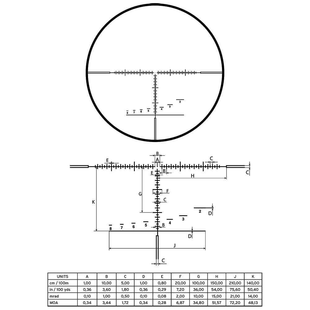 - Wind/Elevation Click Value: 1 cm (0.1 mrad)