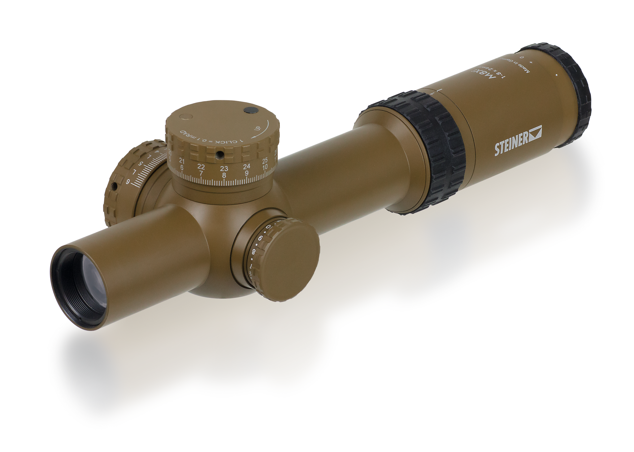 Based on the outstanding success of the M5Xi - used today by Special Forces around the globe - Steiner sets a new benchmark with the ultimate DMR (Designated Marksman Riflescope) M8Xi 1-8x24 with an 8x zoom and an outstanding field of view (4.8-34.2 m at 100 m).
