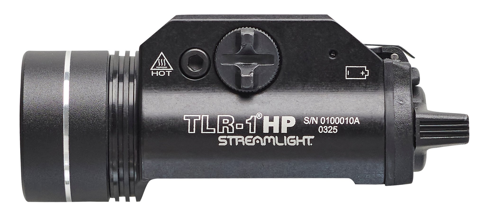 The TLR-1® HP provides 65,000 candela of light for maximum illumination. Its wide beam pattern lights up large areas so you can identify what is nearby. Featuring the latest in shock-proof LED technology and providing 1.75 hours of continuous run time. The silver band that encircles the head of the TLR-1® HP is a trademark of Streamlight®, Inc. We do not recommend carry of a TLR®-equipped firearm without a proper holster. A proper holster should fully cover the trigger guard area, preventing accidental discharge of both the firearm and light.