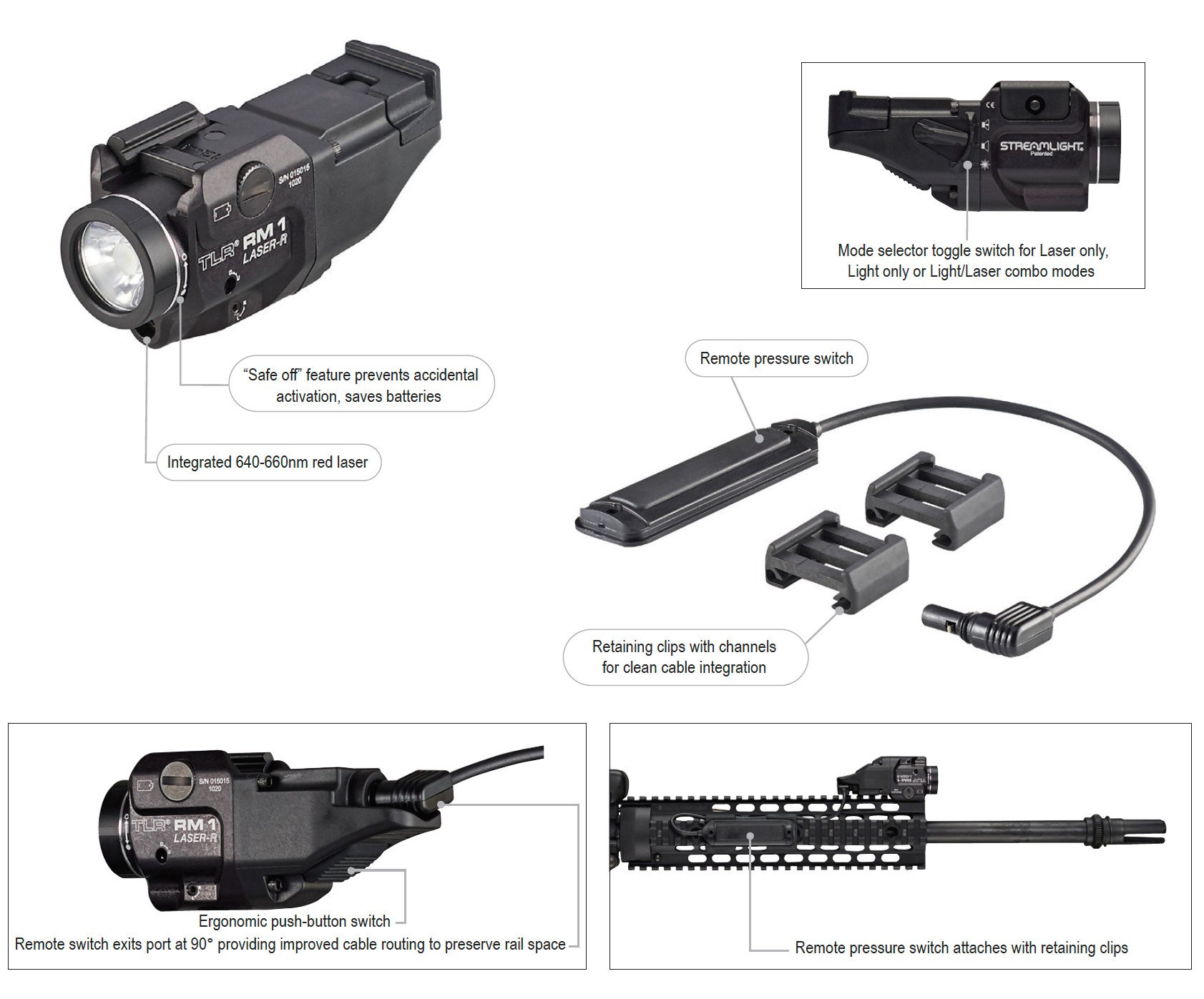 The TLR RM 1 Laser features independently operating push-button and remote pressure switches to provide the security of knowing you'll always have light. Packaged as a kit offering everything you need to mount to your long gun.