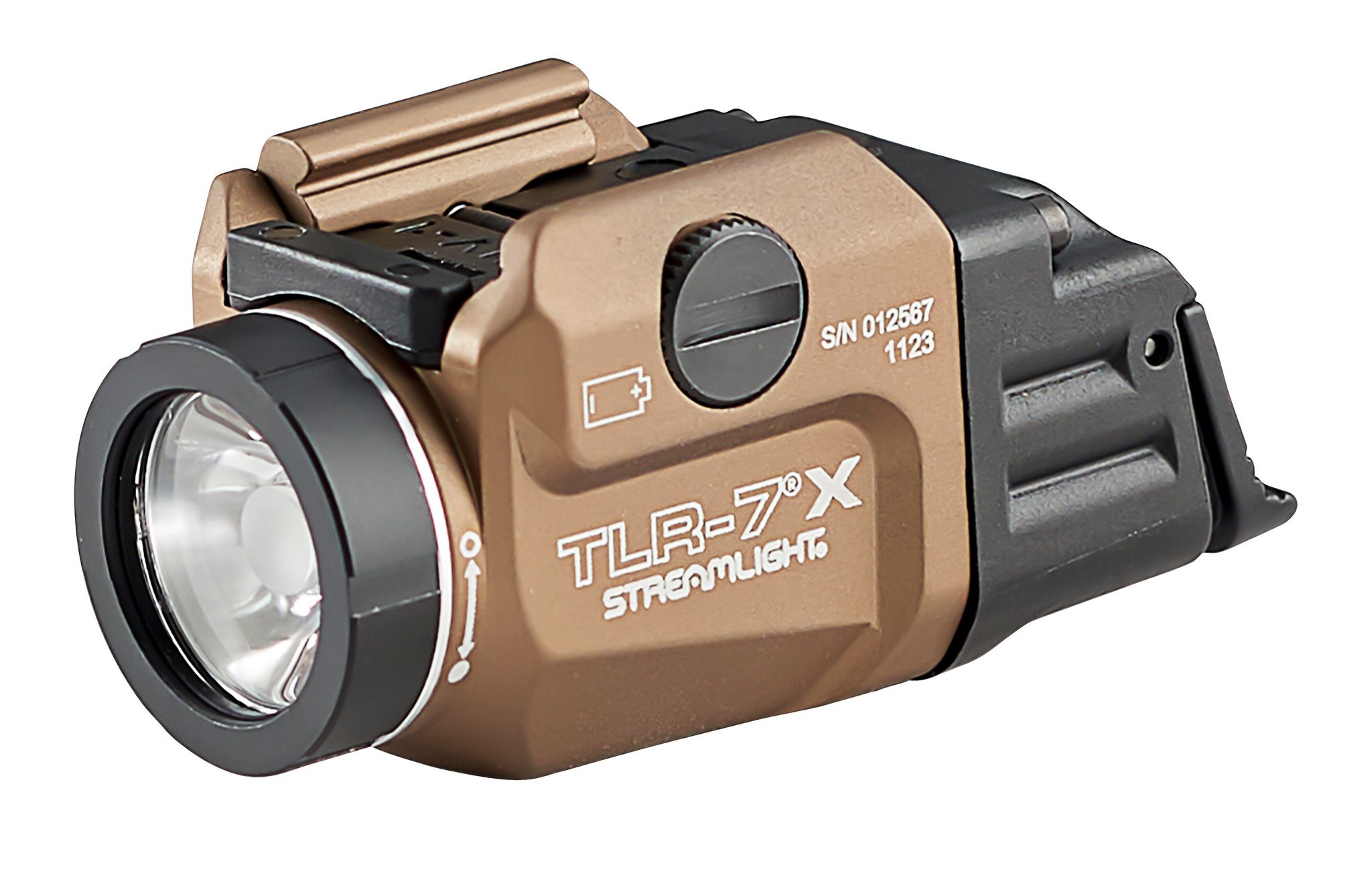 Light up your tactical gear with the Streamlight 69456 TLR-7X USB Low Profile Rechargeable Gun Light in FDE. Now offering a rechargeable option, this rail-mounted light comes with the versatility of using either the Streamlight SL-B9™ USB rechargeable protected lithium-ion battery pack or a CR123A lithium battery. Boasting 500 lumens, ambidextrous rear paddle switches, and a user-enabled strobe function, this durable light is perfect for any shooter. With a safe-off feature and IPX7 waterproof rating, this gun light is both reliable and practical. Available in sleek Black or Flat Dark Earth colors with a limited lifetime warranty, this American-made product is a must-have for your firearm accessories.