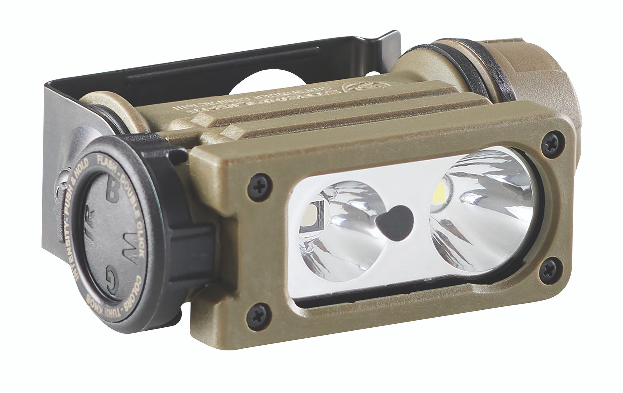 The Sidewinder Compact III is a high-performance flashlight featuring multiple LED sources for versatile illumination. Engineered for hands-free use, it offers a range of color LEDs—including white and IR—with adjustable outputs and run times to suit various tasks. The 185° tilting body and integrated belt/gear clip allow precise beam positioning. A dedicated “survival mode” delivers low-level lighting for over 100 hours of continuous use.