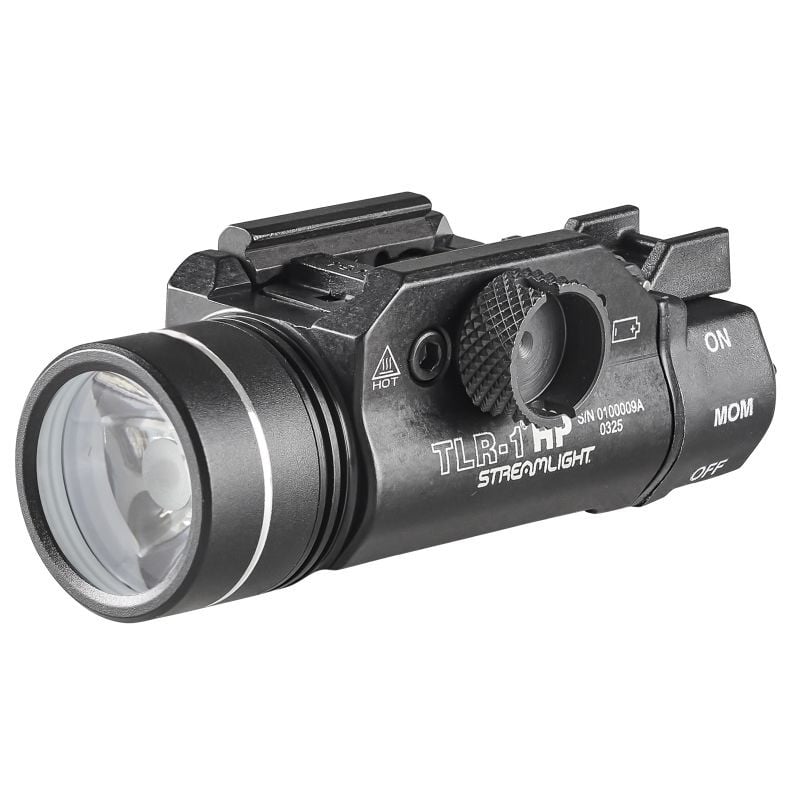 The TLR-1® HP provides 65,000 candela for maximum illumination. Its wide beam pattern lights up large areas so you can identify what is nearby. Featuring the latest in shock-proof LED technology and providing 1.75 hours of continuous run time. The silver band that encircles the head of the TLR-1® HP is a trademark of Streamlight®, Inc. We do not recommend carry of a TLR®-equipped firearm without a proper holster. A proper holster should fully cover the trigger guard area, preventing accidental discharge of both the firearm and light.