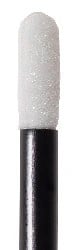 4.125” small flexor foam mitt swab. White non-reticulated polyurethane foam on a black polypropylene plastic extruded handle.
