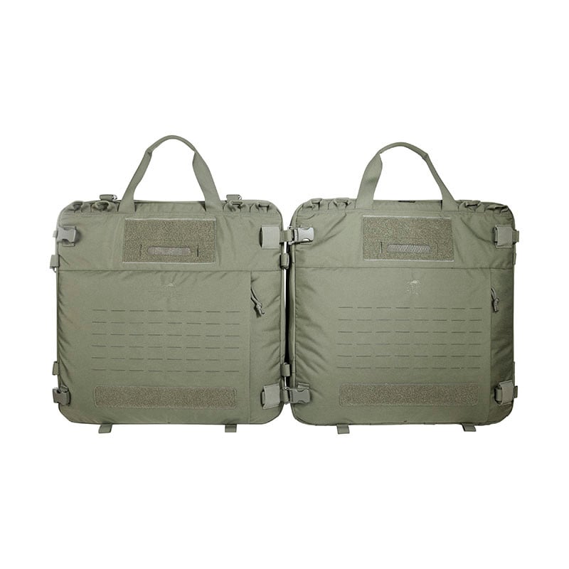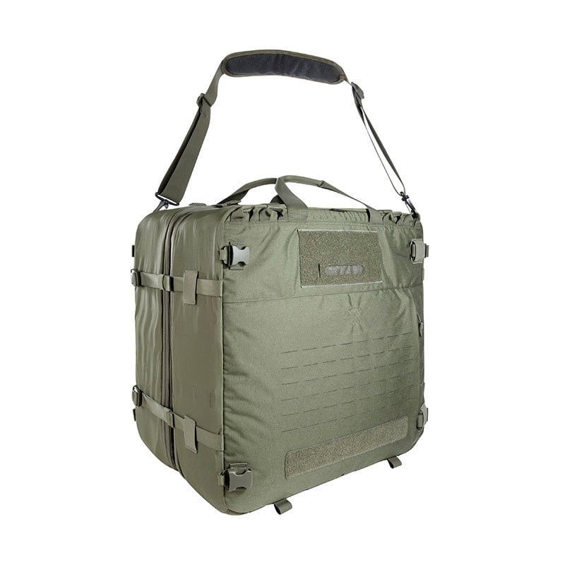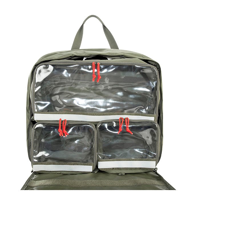 The TT MEDIC CONTAINER is a large transport set for medical equipment, designed for use in military field hospitals. It features two linked modules that can be hung with the included hooks, there are eight detachable pouches in different sizes. Comes with a carry handle and detachable padded shoulder strap. Overall 50 Liter capacity.