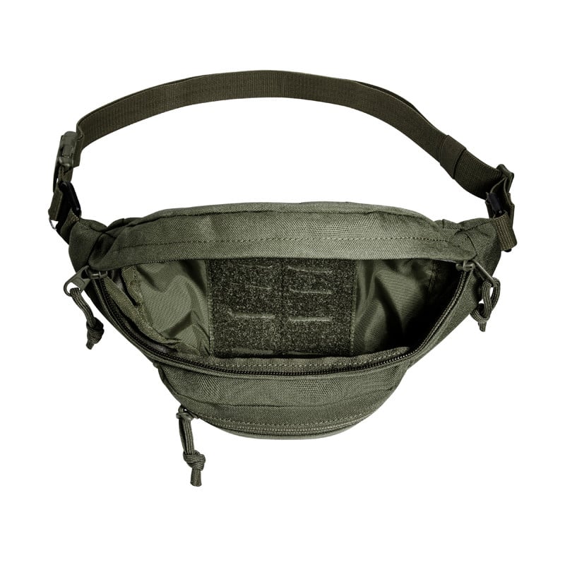 Universal hip bag. The TT Modular Hip Bag has a MOLLE hook and loop main compartment, a small front pocket and an additional zipper pocket on the side. The lid has a laser-cut MOLLE strip. The belt is removable and the built-in hooks allow you to attach the bag to an equipment belt.