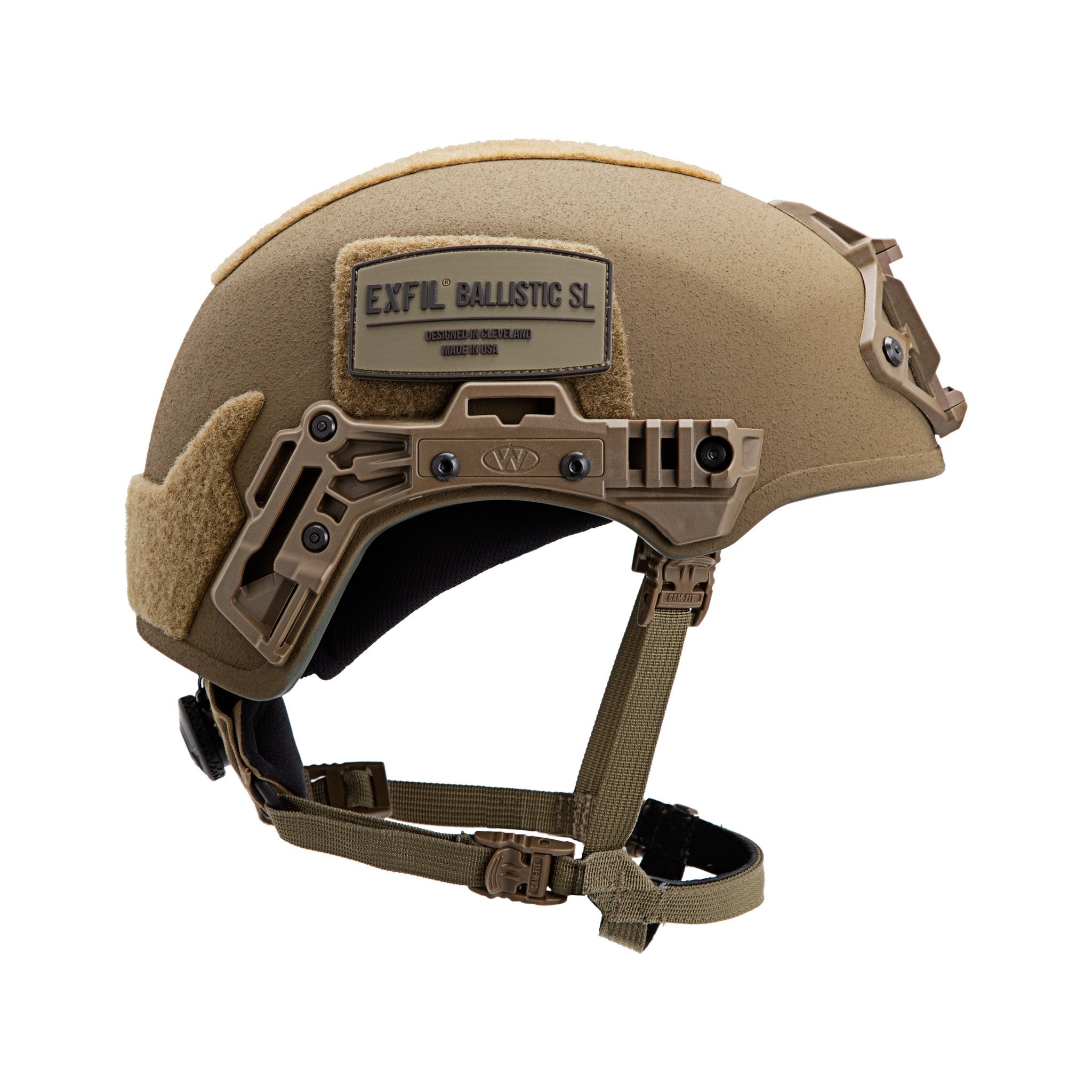 The EXFIL Ballistic SL features a new lightweight composite shell providing a 15% weight reduction over the original EXFIL® Ballistic while offering the same unique EXFIL® shell geometry for an optimal fit. The new EXFIL® Rail 3.0 accessory mounting system, which is 25% lighter than the previous EXFIL®Rail 2.0 system, is compatible with standard EXFIL® accessories and was designed in conjunction with the new EXFIL® Ballistic Visor. A new SL Shroud* from Wilcox® provides a 35% reduction in weight from the previous Wilcox® W Shroud while maintaining full NVG mounting capabilities and lanyard compatibility. The EXFIL® Ballistic SL utilizes the innovative, field-proven, boltless CAM FIT™ Retention System to quickly adjust to individual head shapes and a Zorbium® foam liner to provide customizable comfort while protecting against blunt impact.