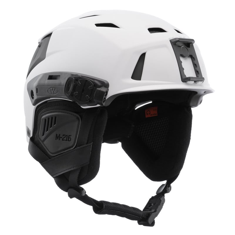 The M-216™ Ski Search & Rescue helmet features a hybrid shell design; ABS hard front shell provides reinforcement for mounted accessories, and an in-mold PC rear shell reduces weight. The helmet includes a glass-reinforced polycarbonate shroud for mounting NOD’s, cameras and head lamps; a customized Boa® Closure System for precise fit adjustment with single handed quick release, and accessory rails that allow for mounting a variety of lights and cameras. The M-216™ also comes with the choice of a Princeton Tec® MPLS Switch or Switch Rail light that will mount directly into the helmet rail.