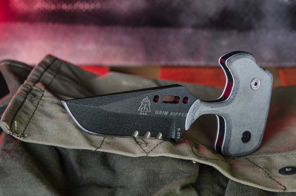 The Tops Grim Ripper Fixed Blade Push Dagger is a robust tool designed for maximum penetration and cutting power. With a blade length of 3.75 inches and a thickness of 0.250 inches, this dagger is built for serious applications. Crafted from 1095 carbon steel, it features a black traction-coated finish for durability and a striking appearance. The ergonomic black linen Micarta handle ensures a firm grip, while the included black Kydex sheath with a rotating spring steel clip offers versatility in carry options. Weighing just 8.8 oz, this exceptional fixed blade has earned the trust of Marines, law enforcement, and Special Ops personnel alike.