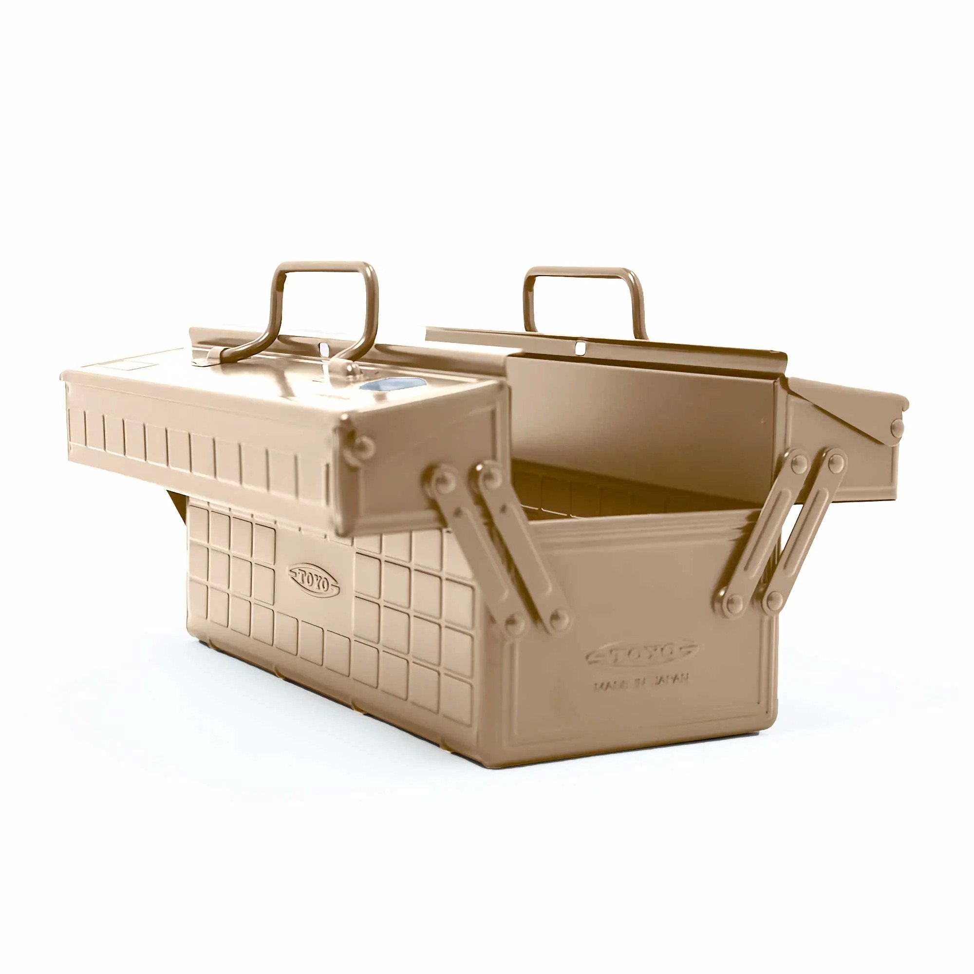The Toyo ST-350 toolbox is a robust and versatile storage solution, perfect for organizing a variety of items such as tools, art supplies, or even medical supplies. Steel toolbox with cantilever lid, one upper storage tray with adjustable and removable dividers and hole for a padlock. Use for art supplies, make-up, medical supplies, snacks or tea - the possibilities are endless.
