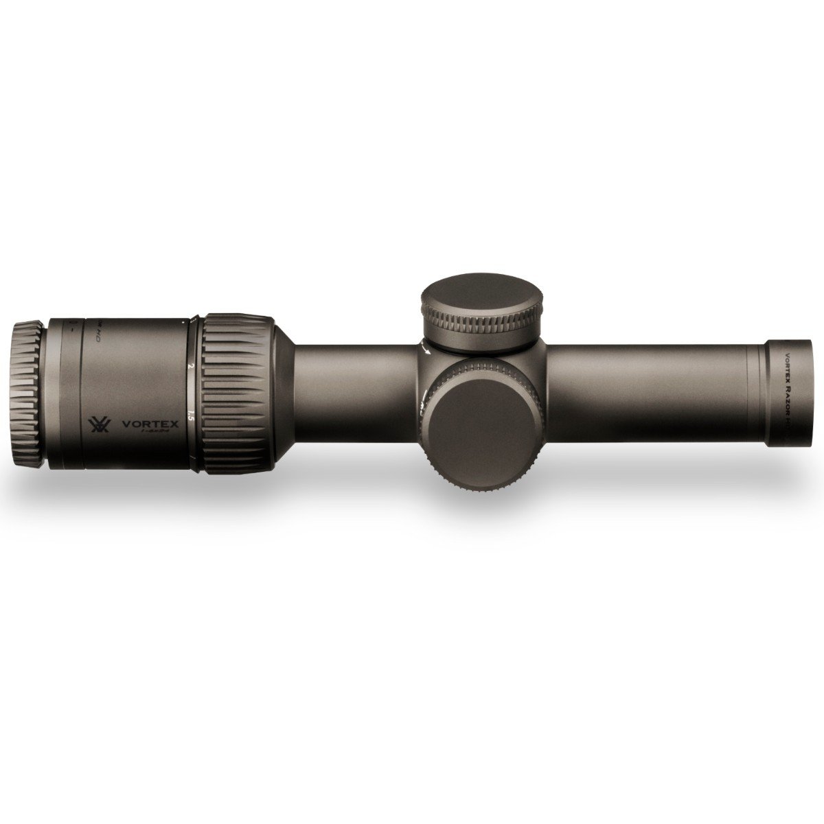 At nearly 1/4 pound lighter than the original Razor HD Gen II 1-6x24, the "E" (Enhanced) model allows for quicker transitions between targets and less arm fatigue during long days on the range. Perfect for the AR platform, the Gen II-E 1-6 is a top-tier optical solution for short to medium range tactical applications. Optically, it delivers the highest level of clarity, resolution, color accuracy, light transmission and edge-to-edge sharpness. True 1x on the low end is complimented by an ultra-forgiving eyebox with generous eye relief for a heads-up-display-like sight picture and a daylight bright illuminated center dot in the reticle for extremely fast target acquisition in close quarters. Ultra-sleek and built like a tank on a 30mm, aircraft-grade aluminum tube, the Razor HD Gen II-E 1-6x24 features ultra-low profile, capped windage and elevation turrets for streamlined performance. Zero-resettable turrets offer 50 MOA (20 MRAD) of adjustment in a single turn, ensuring ample travel.