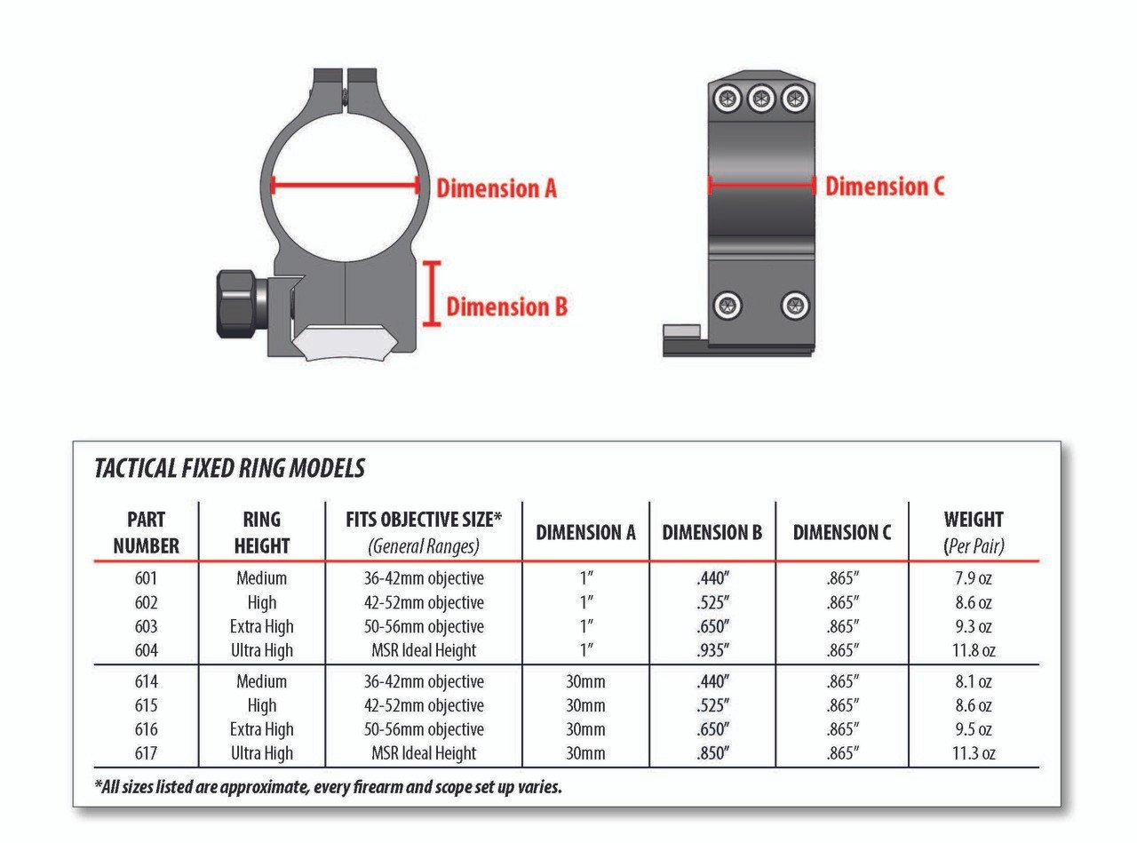 - Rings have up to eight T-15 Torx style screws for superior holding, 25 in/lb. of torque recommended.