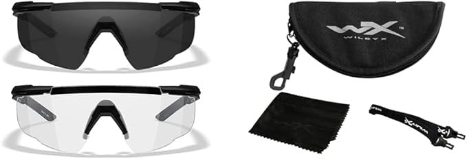 Product Includes: Zipper Case w/ Microfiber Drawstring Bag, Cleaning Cloth with Wiley X Logo, Leash Cord with Rubber Grips, Saber Advanced Strap