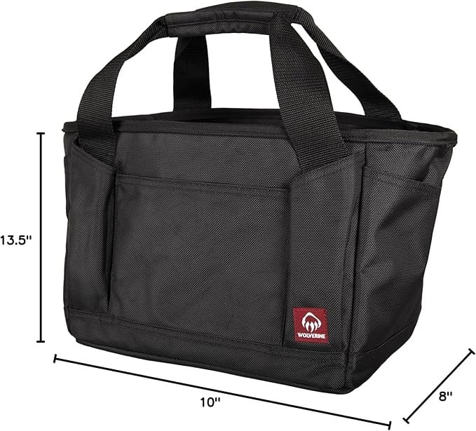 DURABLE PROTECTION: The WOLVERINE 13 Inch 17 Pocket Tool Tote is built to last and withstand wear and tear. Made with heavy duty 1680D Polyester that has superior durability, as well as a dirt and water-resistant surface coating. This tool tote is both sturdy and durable, making it the ideal choice for any job site.