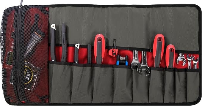 VERSATILE STORAGE: With 16 pockets of varying widths, you can easily organize and store a variety of hand tools, while the zippered mesh pocket provides secure storage for smaller items.