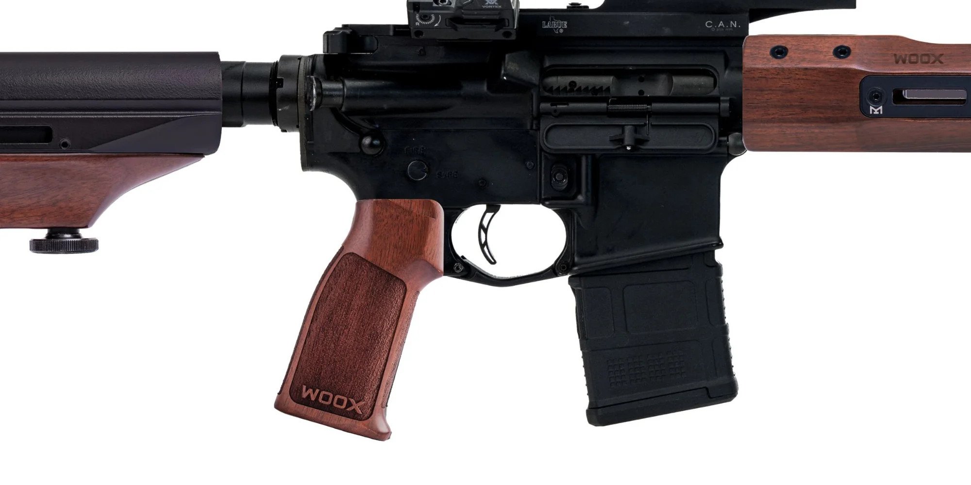 WOOX proudly presents the Vigilante Grip, a sophisticated aftermarket replacement designed for AR enthusiasts who appreciate both performance and aesthetic excellence.