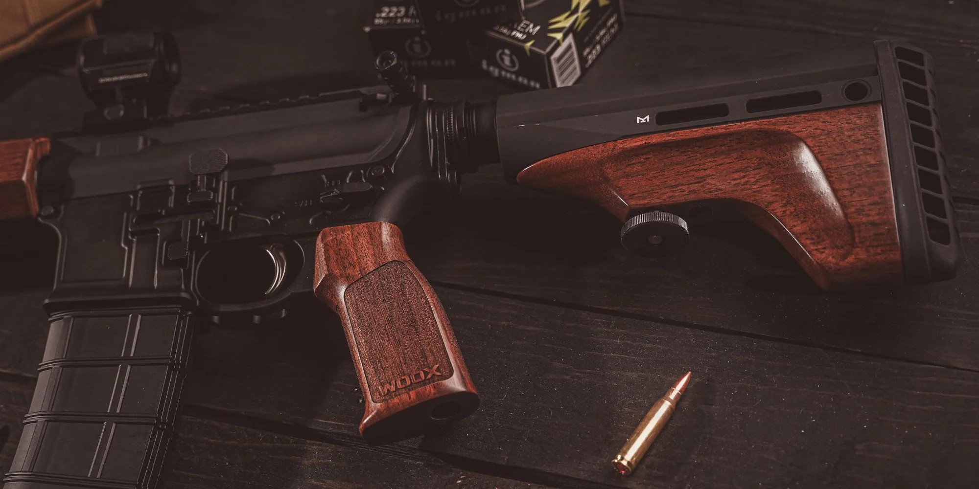 The Vigilante Stock stands as a celebration of heritage, blending authentic American Walnut with premium craftsmanship to deliver an unparalleled upgrade for your AR platform.