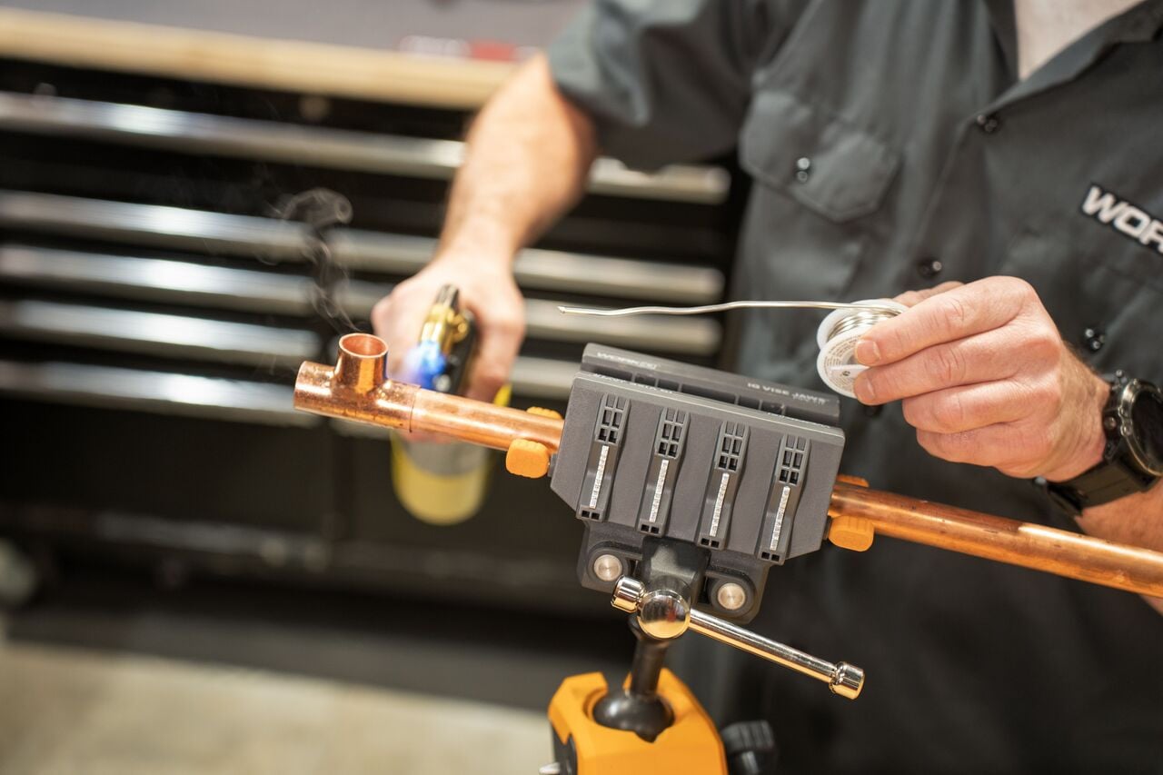 - Double-sided jaws quickly convert the vise for cast iron or galvanized pipes.